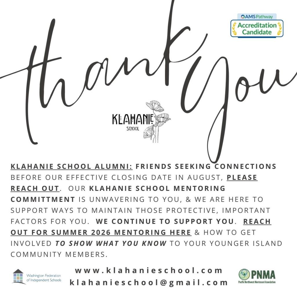 Klahanie School PO Box 2426 Vashon Island, WA. 98070