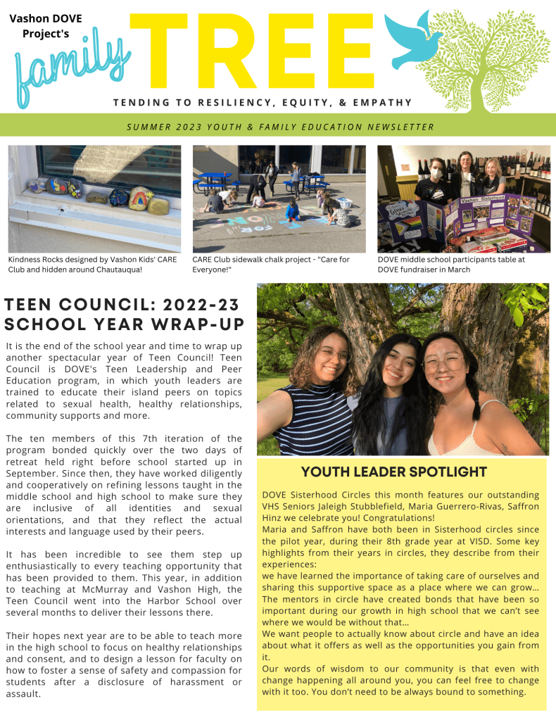 The Vashon DOVE Project Newsletter with Amazing Youth Community Updates! Posted byKlahanie SchoolJuly 26, 2023July 26, 2023Posted inUncategorized Share this: Click to share on X (Opens in new window) X Click to share on Facebook (Opens in new window) Facebook Like Loading...