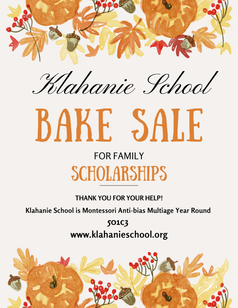 Klahanie School Bake Sale Financial Aid Fundraiser! Posted byKlahanie SchoolOctober 18, 2024Posted inUncategorized Sunday October 20th, Vashon Thriftway 10am-1pm, see you there! Thank you for the support! Share this: Click to share on X (Opens in new window) X Click to share on Facebook (Opens in new window) Facebook Like Loading...