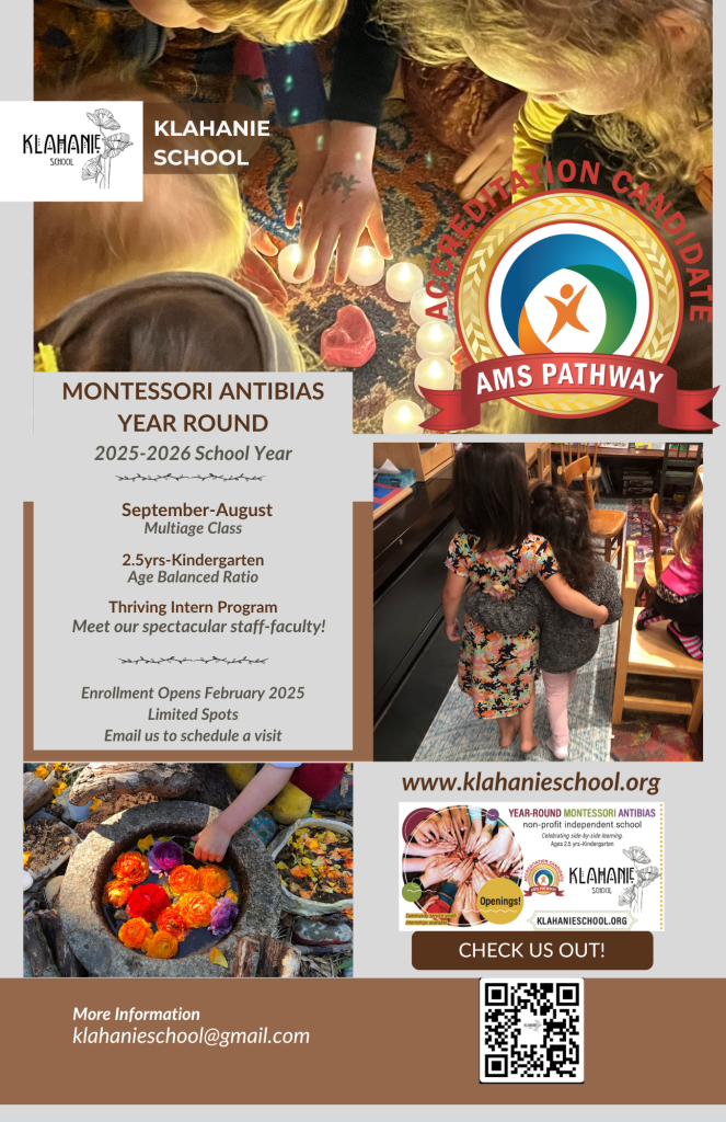Looking forward to connecting about the magic created at Klahanie School in a Year Round Montessori Antibias school year!