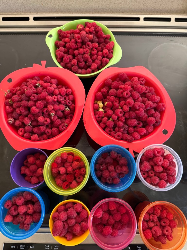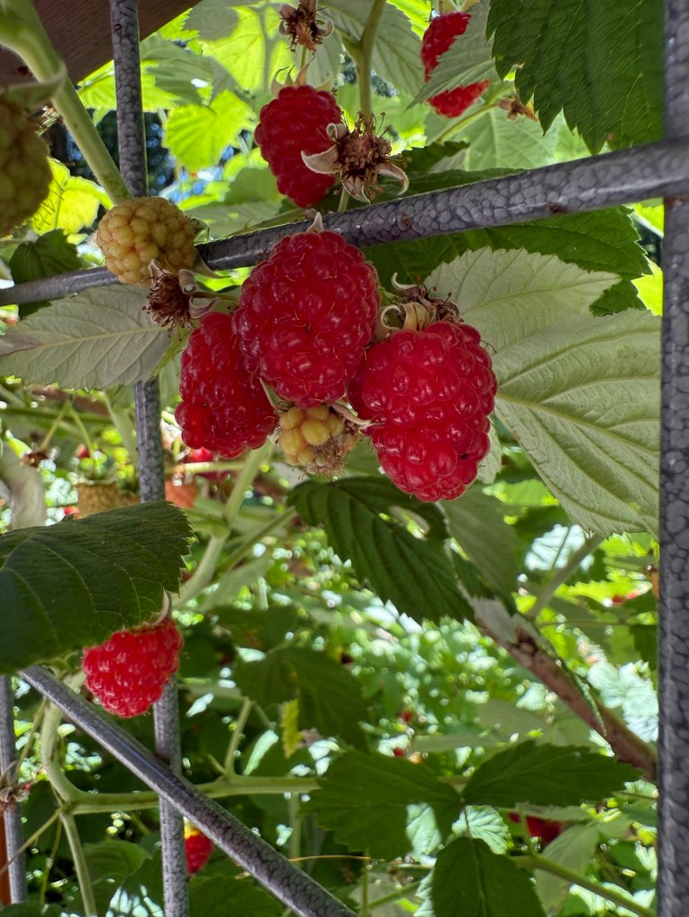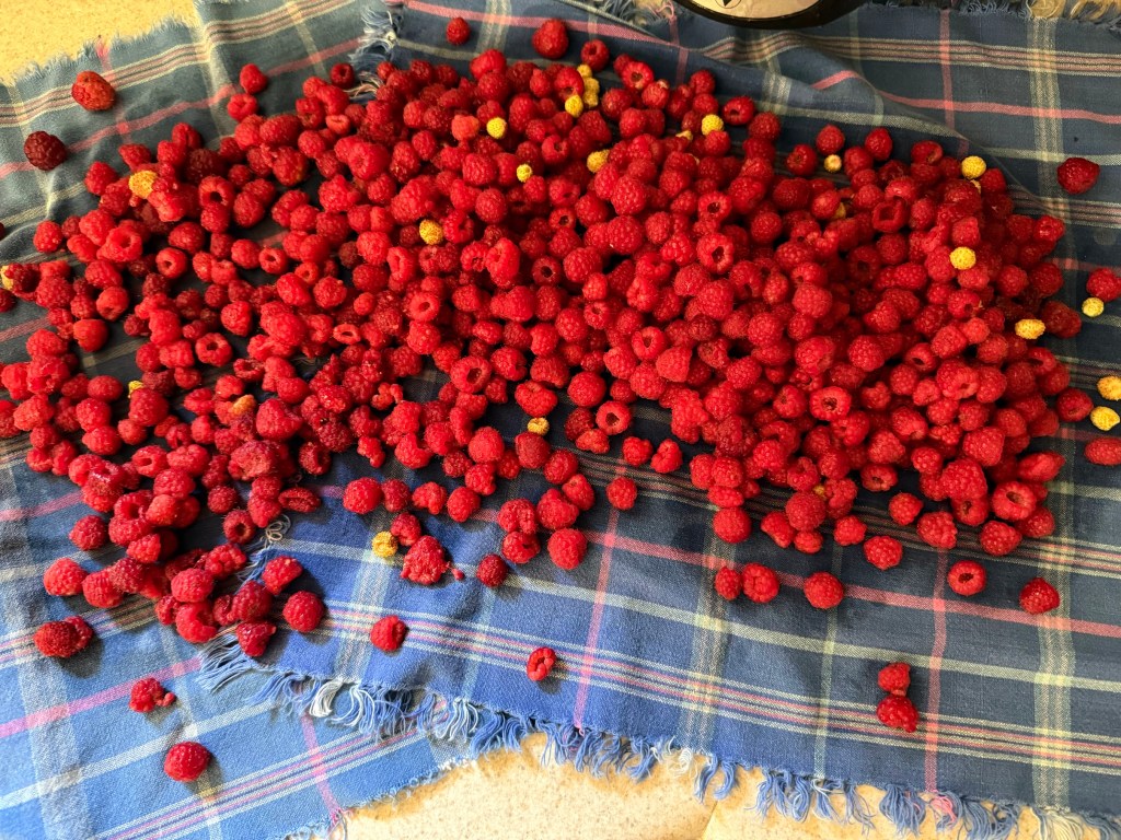 *The Klahanie School Garden Raspberries harvested by the class were voted by the current class to group bake into a cake, topped with raspberry jam lava flowing from an ice-cream cone mountain, photos will follow 🙂