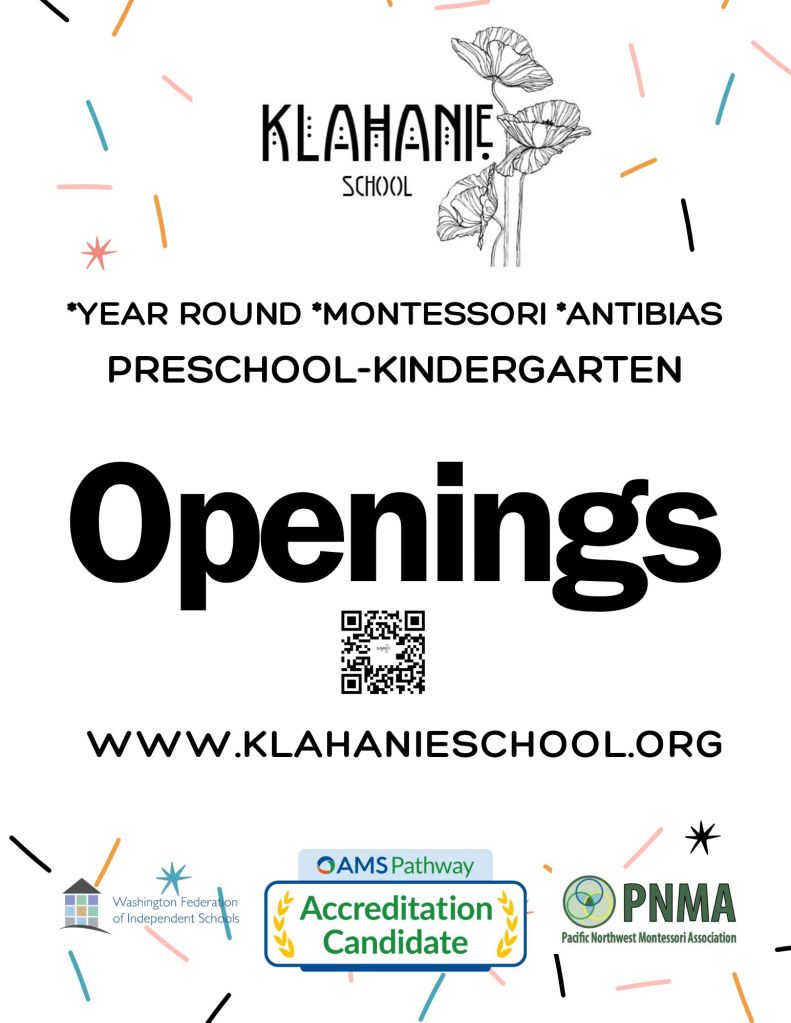 2026-2027 Klahanie School Registration is Open! Posted byKlahanie SchoolDecember 29, 2025December 22, 2025Posted inUncategorized Email the school to schedule your January tour! Share this: Click to share on X (Opens in new window) X Click to share on Facebook (Opens in new window) Facebook Like Loading...